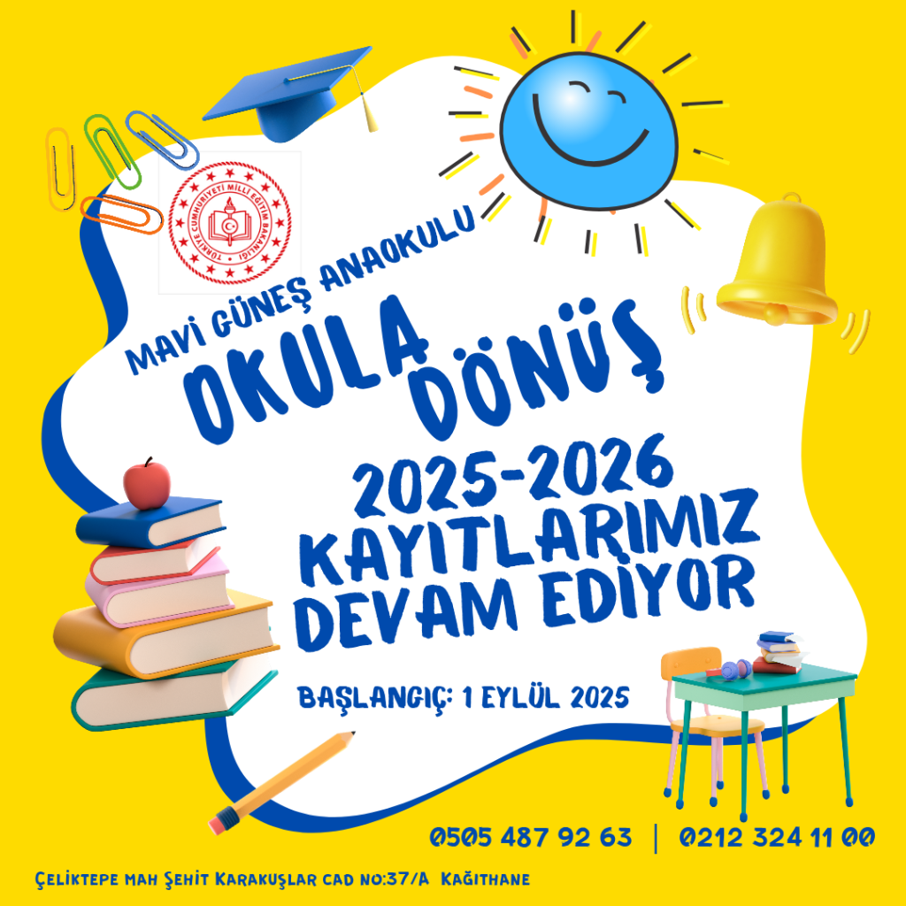 Çocuğunuzun geleceği için en doğru adımı atın. Özel Mavi Güneş Anaokulu’na erken kaydınızı yaptırın, onların parlayan bir geleceğe adım atmalarını sağlayın!